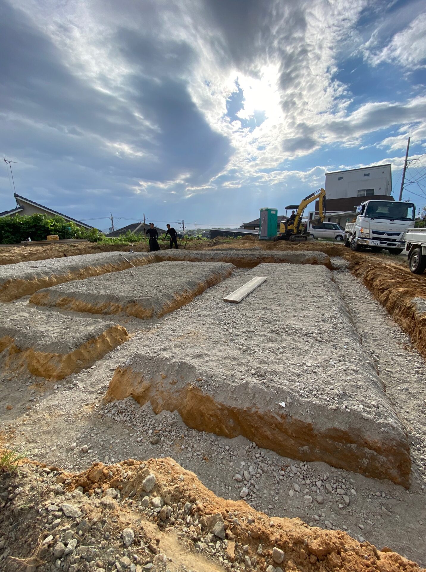 豊橋市『向草間町の家』では、基礎掘削および砕石敷が行われ