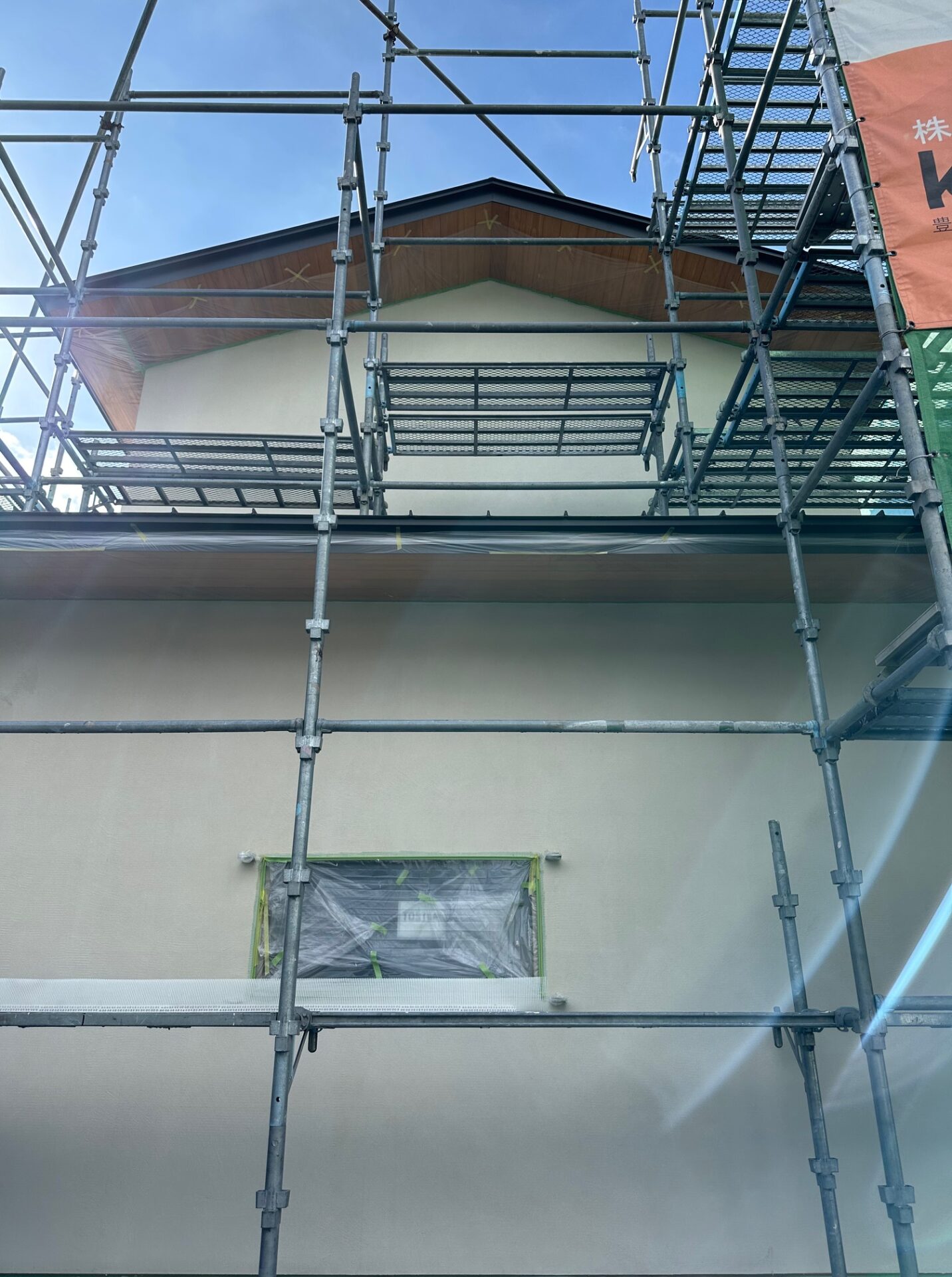 来週末には、外壁塗装も完了し外部足場の解体段取りと進んでまいります。