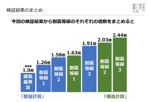 したがって、これらの違いにより一般的に言われている『耐震等級』にも大きな違いがうまれてしまうのです。
