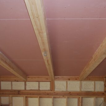 内外部の天井板張りが大工さんの手によって完了いたしました。とてもいい感じに仕上がっています。