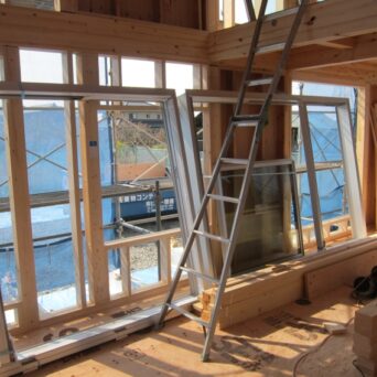 サッシが搬入されました。このあとはサッシ取り付けと外壁下地組みです。