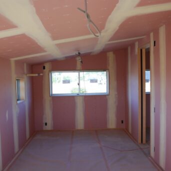 吹付断熱工事が完了いたしました。丁寧に施工して頂きありがとうございます。続いて内部造作工事へ進んでいきます。