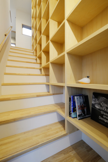 本棚をくぐると寝室や子供室のあるプライベート空間へつながります。