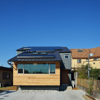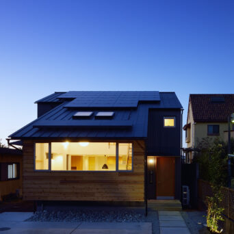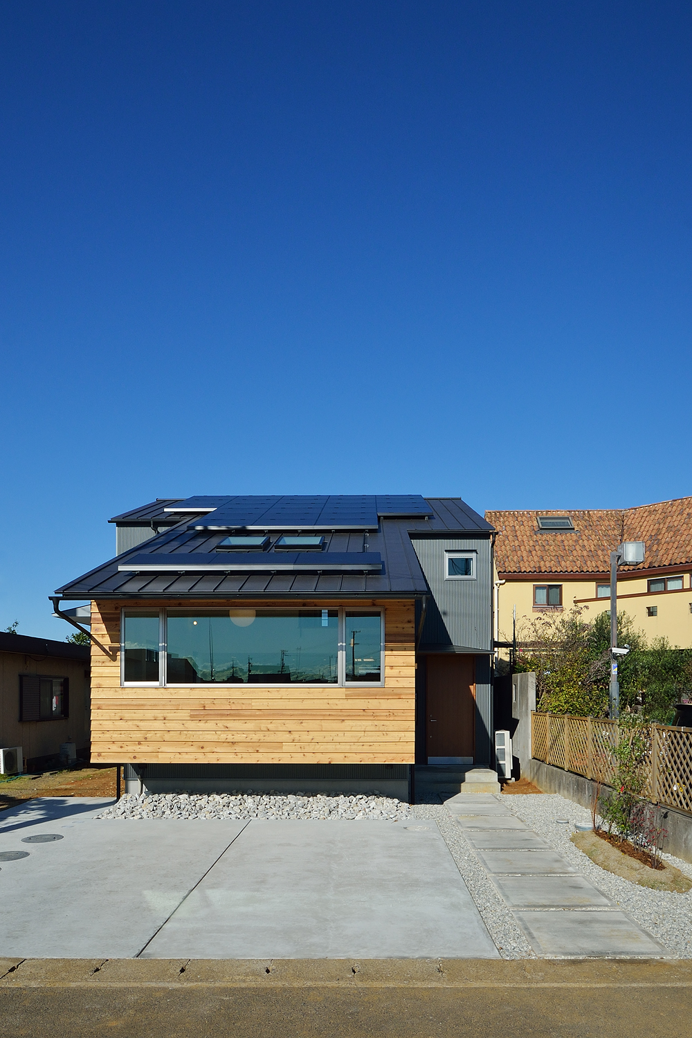 浜松市の南側道路に面した敷地に建つ住宅です。