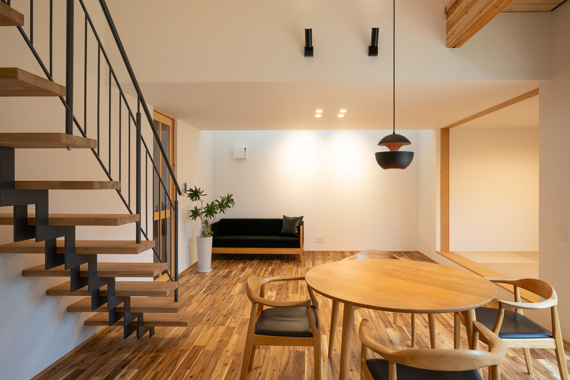 視線の抜けと光の流れが重なることで、家全体に一体感が生まれ、日常の何気ない瞬間さえ心地よく感じられる空間となっています。